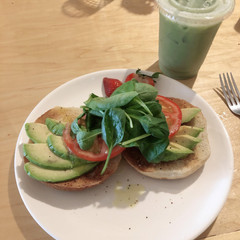 The Bakery in Altoona opened up in December of last year. I did a little road trip and tried it out for the first time back in March and immediately fell in love. I knew I had to bring Jon out. He loved it too and we've gone quite a few times now. It's a bakery/coffee shop/restaurant that changes up their menu items weekly. They also specialize in gluten-free and vegan options, which is great since there aren't many places around here who offer that. Everything I've had there is absolutely delicious. I decided to order a birthday cake from there to eat before we went to the fest and then we took the rest of the cake with us to share with friends. I got a vegan vanilla buttercream cake because I've had some of their vegan options before and they were so tasty. Also, some of our friends who were attending the fest are vegan...so I wanted them to be able to enjoy some if they wanted. We were also eating brunch there and I decided to get an avocado bagel with tomato, which was a nice change up for me since I've only had sweets there.